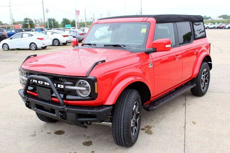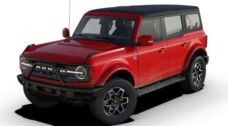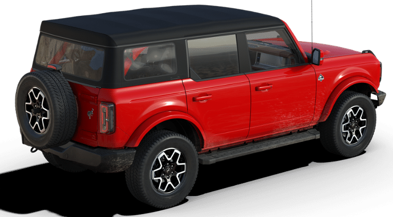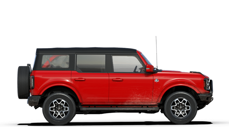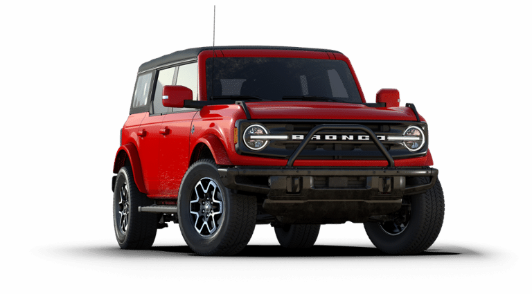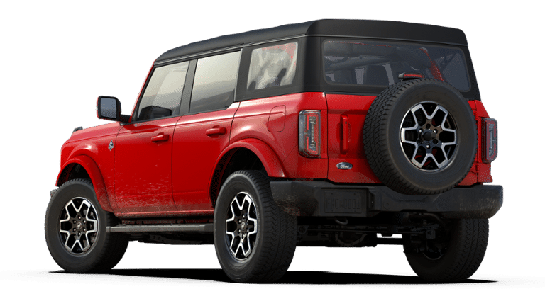 2024 Ford Bronco 4 Door with the Outer Banks trim level, Soft Top and Race Red in color that looks awesome!