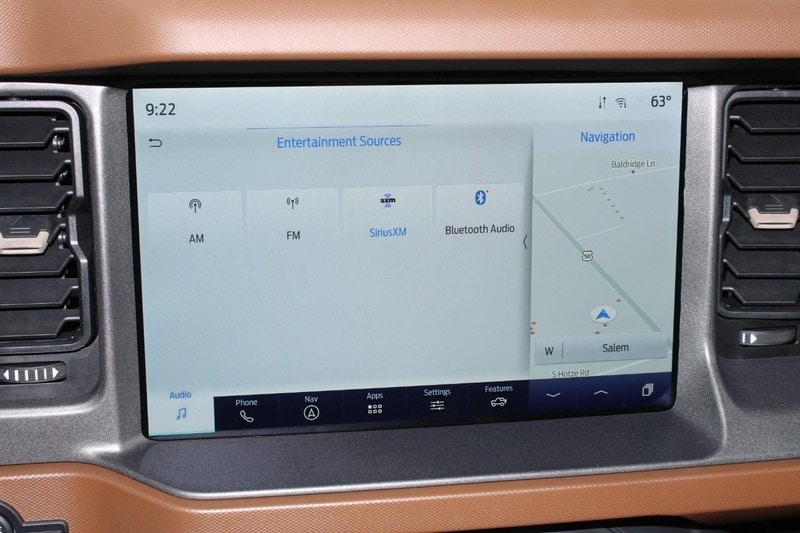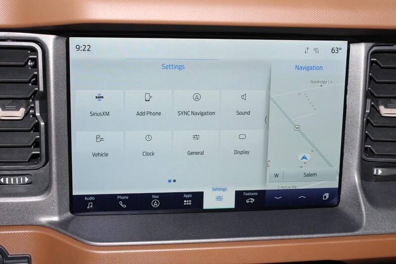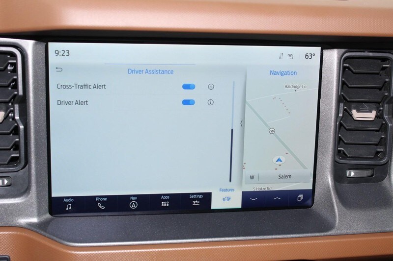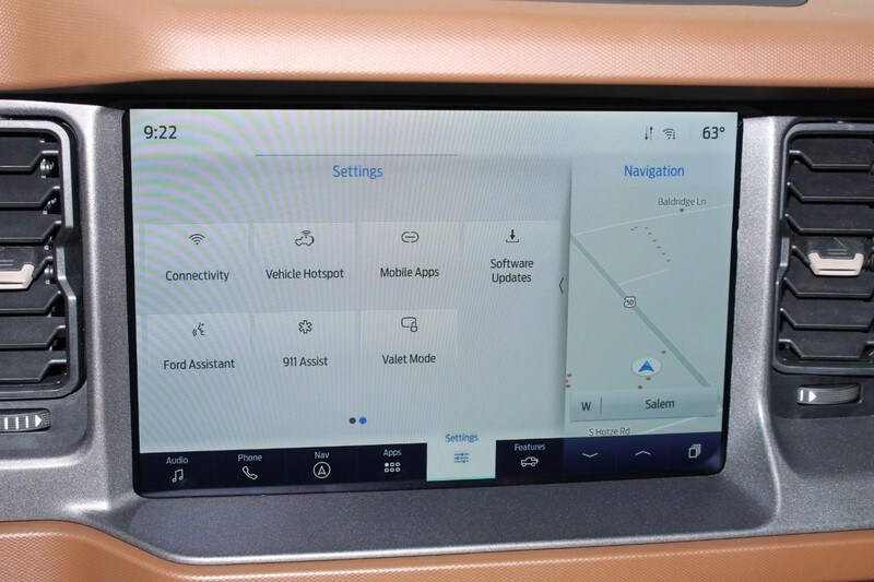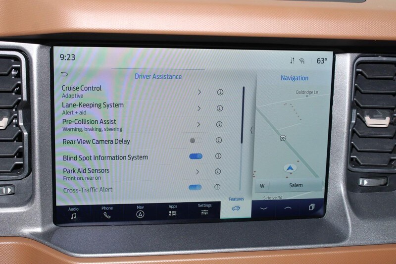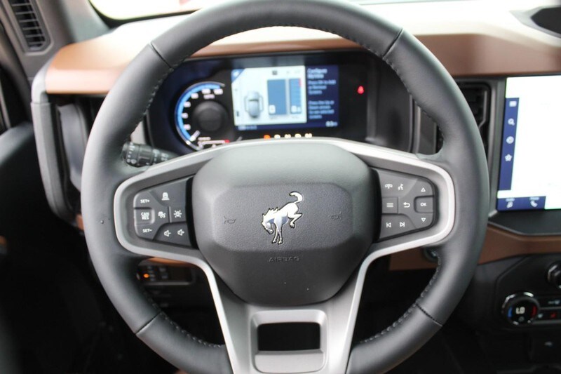 Ford Co-Pilot 360, Adaptive Cruise Control, Heated Steering Wheel, Wireless Charging Pad and the Front Brush Guard are also found on this Bronco.