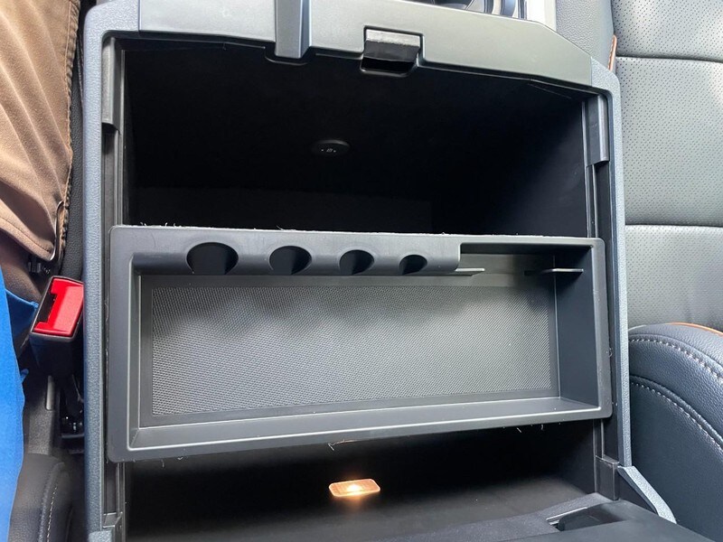 Cargo Bin under the Rear Seat to help keep tools/gear from rolling around on the floor.