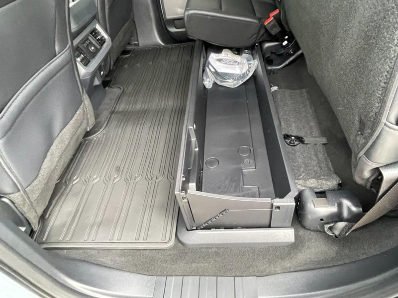 Cargo Bin under the Rear Seat to help keep tools/gear from rolling around on the floor.