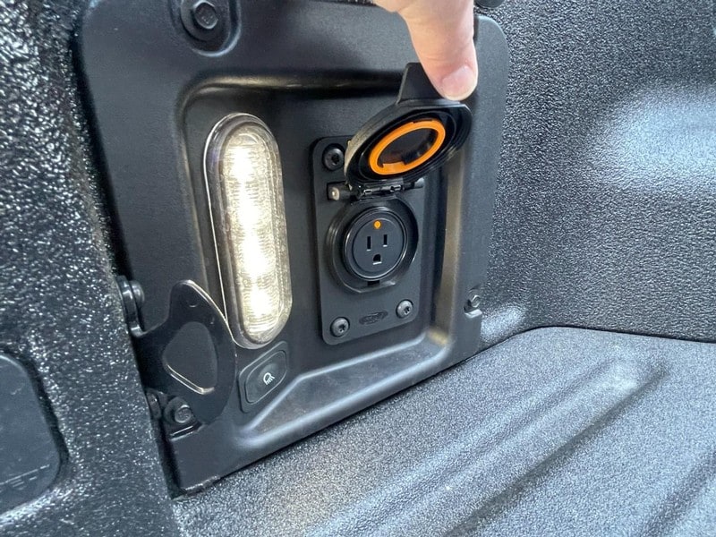 The bed of this Maverick has the Tough Bed Spray In Bedliner, Bed Tie Down Locking Rails, Storage Compartment and a 110 Volt Plug In.